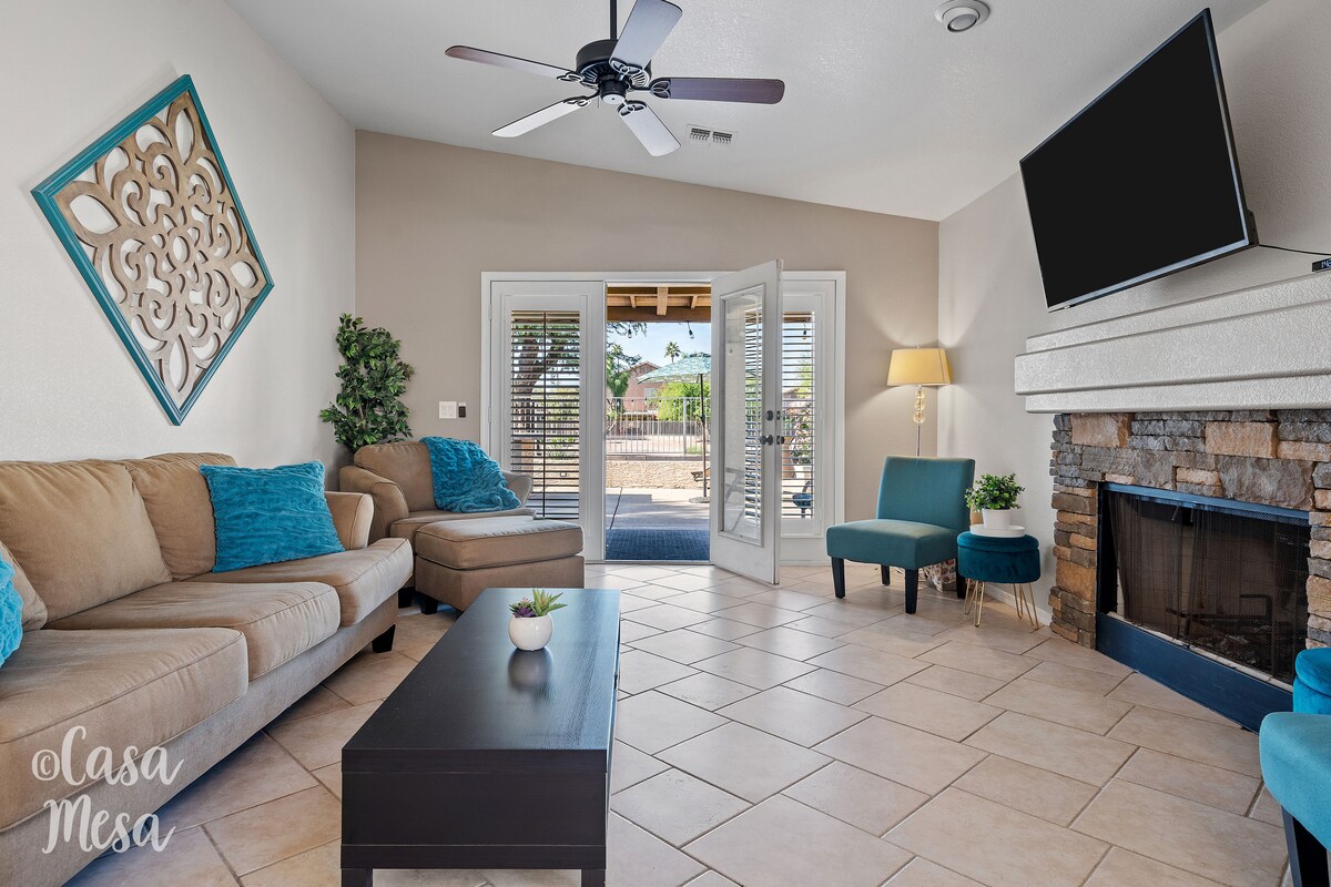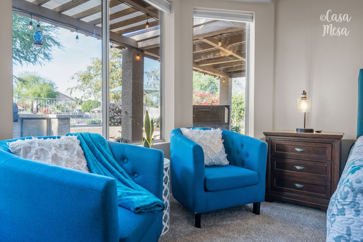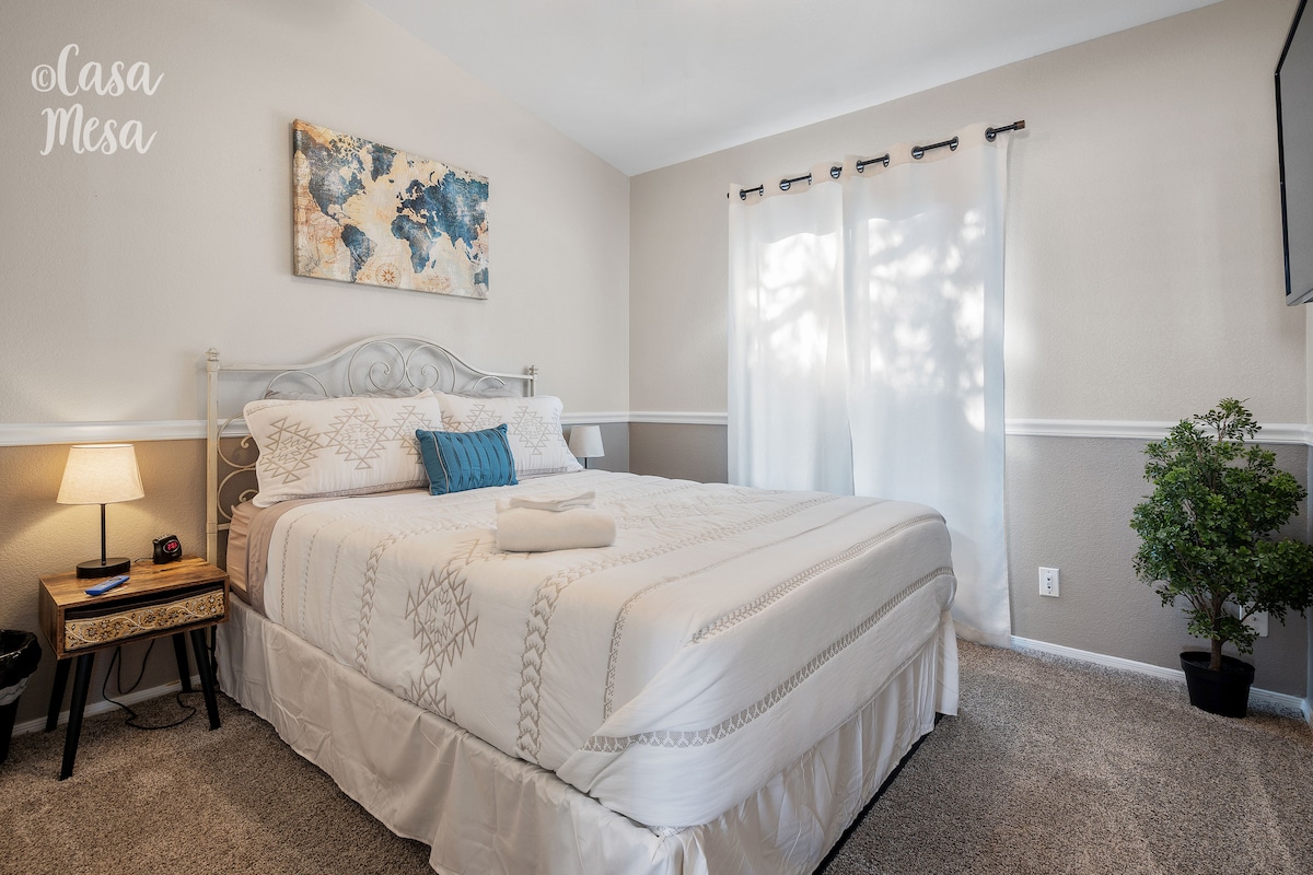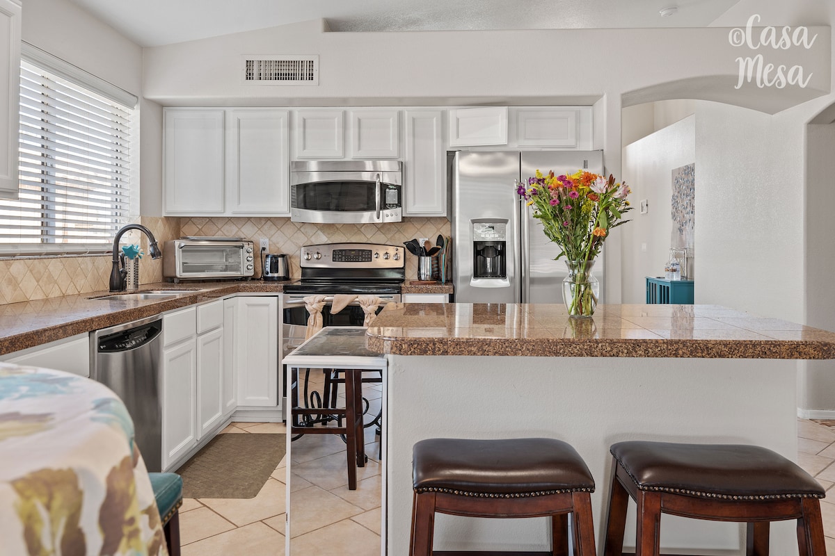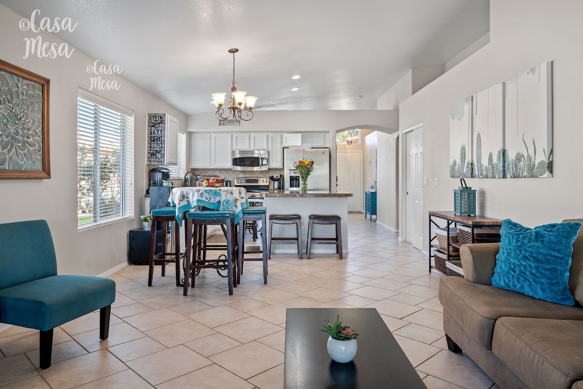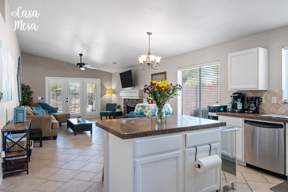 MesaSit on the back patio and watch the famous Arizona sunsets over the lake, and soak up the sunshine in this lovely Phoenix east valley home. This home-away-from-home is in the Superstition Springs area of Mesa, and is fully stocked and professionally decorated for your comfort and enjoyment. Walk to the nearby theatre, or try out the many restaurants and shops nearby.